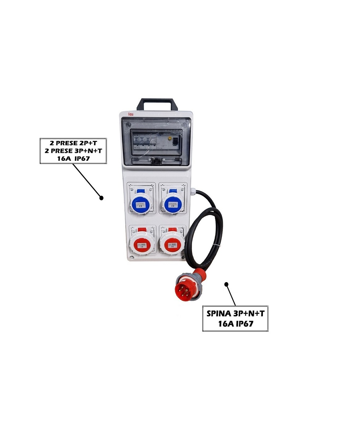 QUADRO ELETTRICO INDUSTRIALE 16A CANTIERE 220/380V 4 PRESE IND. 2P+T 3P+N+T 16A IP67 MAGNETOTERMICO DIFF ASC IP65 CERTIFICATO