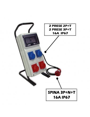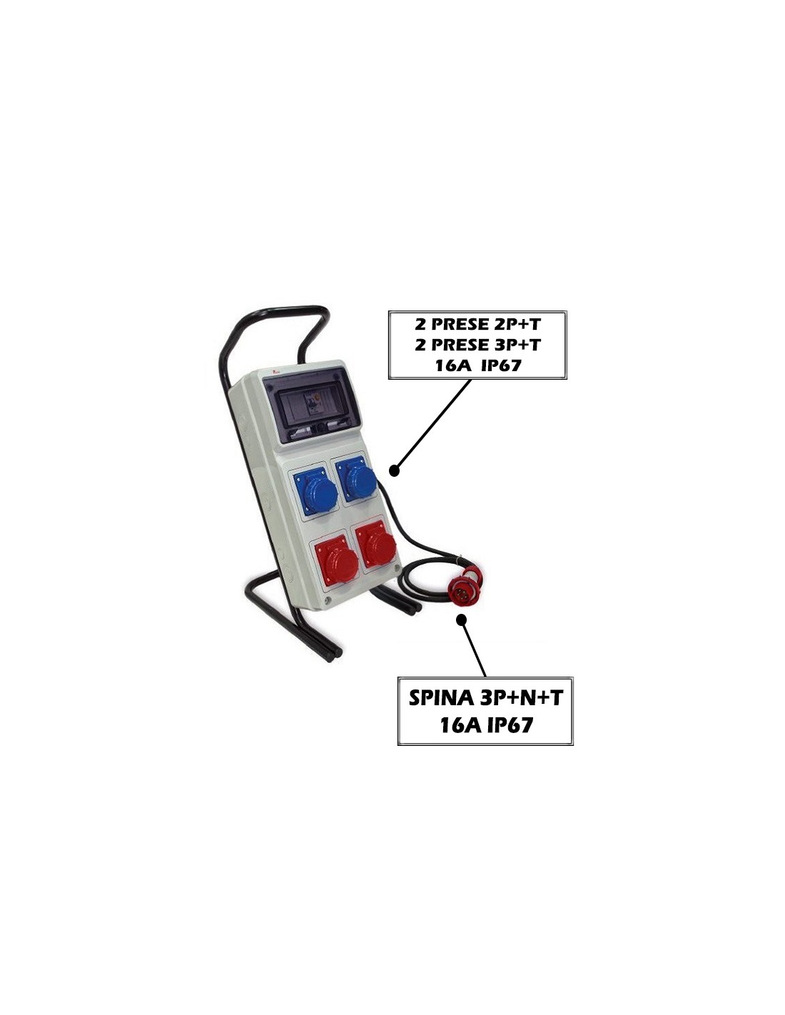 QUADRO ELETTRICO INDUSTRIALE + CAVALLETTO 16A CANTIERE 220/380V 4 PRESE IND. 2P+T 3P+T 16A IP67 MAGNETOTERMICO ASC CERTIFICATO