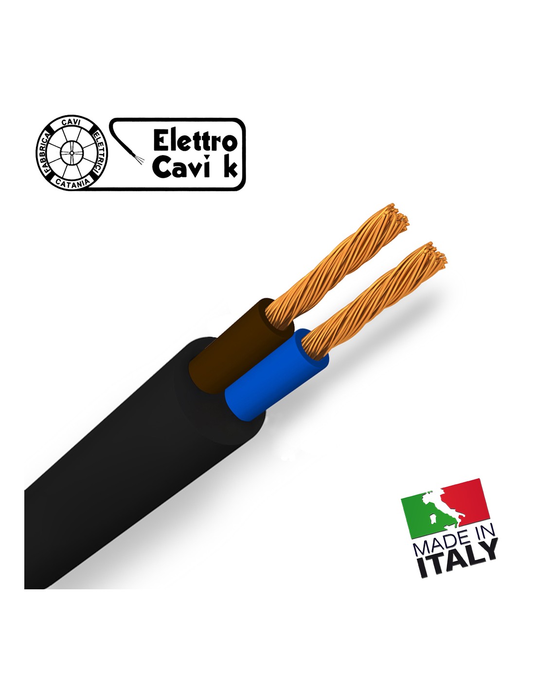 CAVO ELETTRICO H05VV-F 2x1 mm² NERO BIPOLARE 2 POLI SIMILGOMMA GOMMATO FLESSIBILE CPR ECA PROFESSIONALE MADE IN ITALY