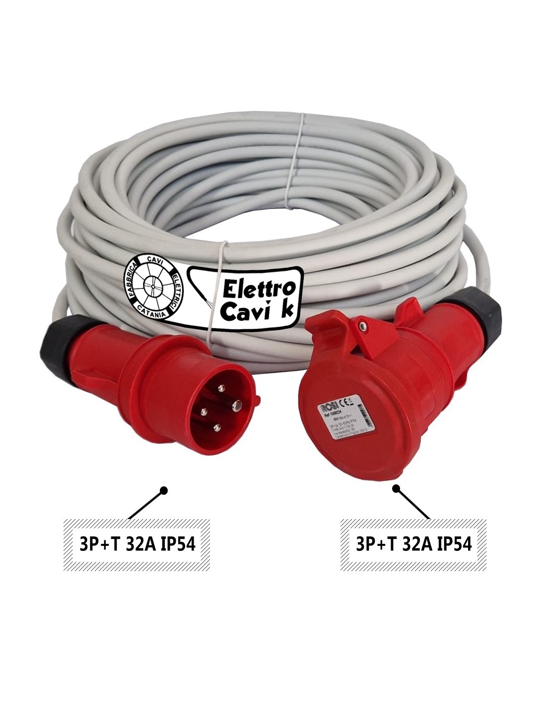 PROLUNGA ELETTRICA INDUSTRIALE 32A TRIFASE 380V 3P+T IP54 CAVO FROR 4G4 - 4G6 mm² 4 POLI PROFESSIONALE MADE IN ITALY