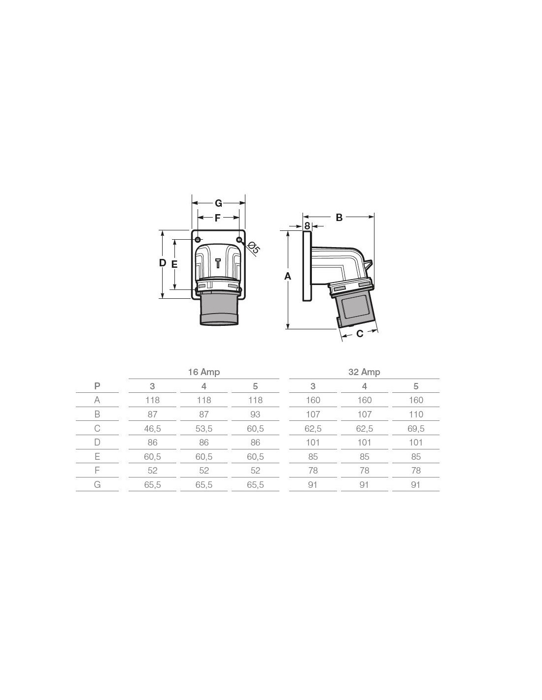 SPINA INDUSTRIALE 32A TRIFASE DA INCASSO INCLINATA 90° 5 POLI 3P+N+T IP54 380V PROFESSIONALE MARCA ROSI