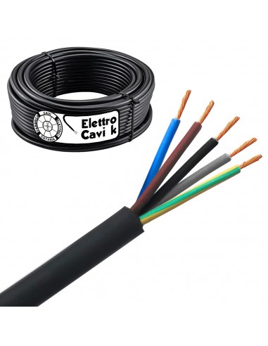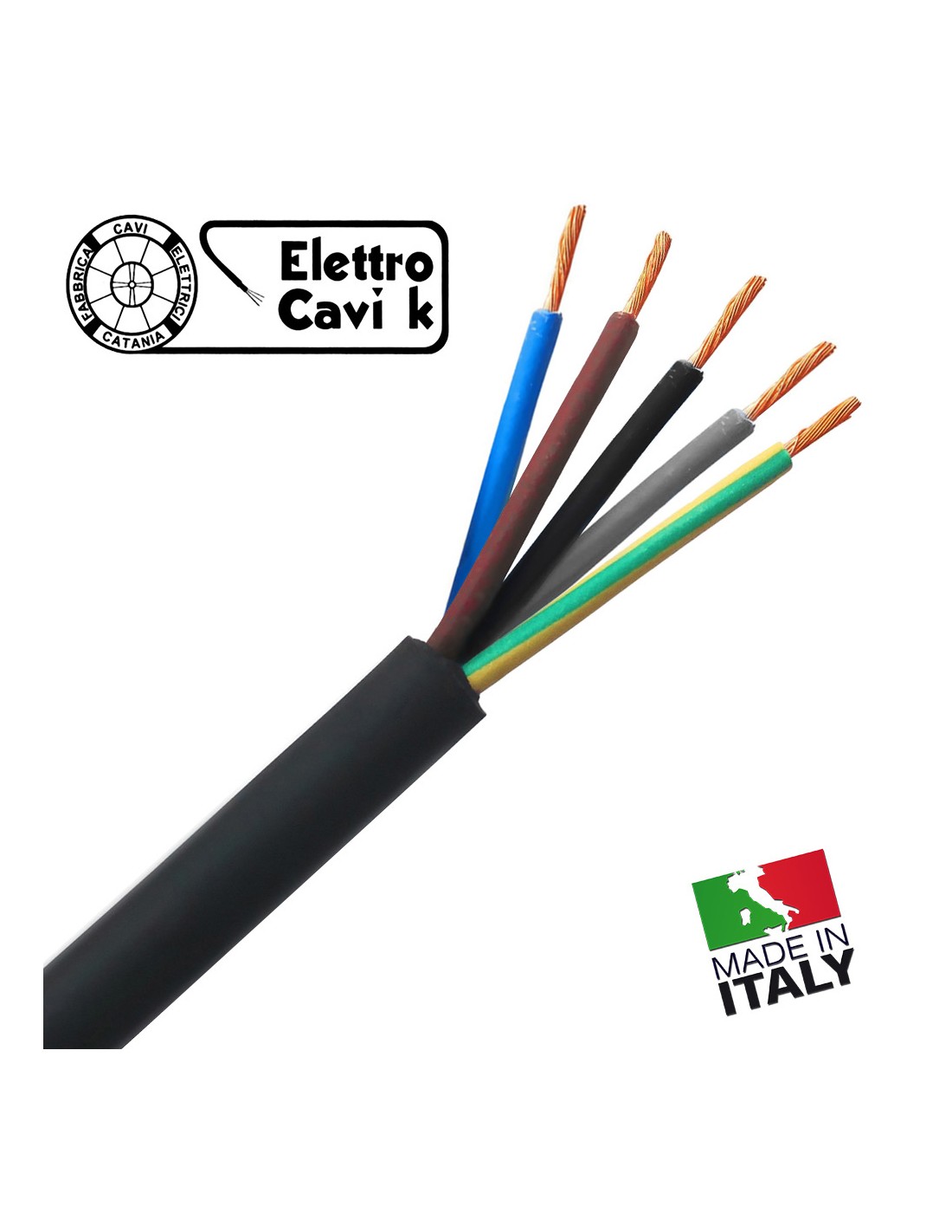 CAVO ELETTRICO H07RN-F 5G1,5 mm² IN GOMMA PER USO ESTERNO E INTERNO RESISTENTE ALL' ACQUA PENTAPOLARE 5 POLI CPR IMQ 0,6/1 kV