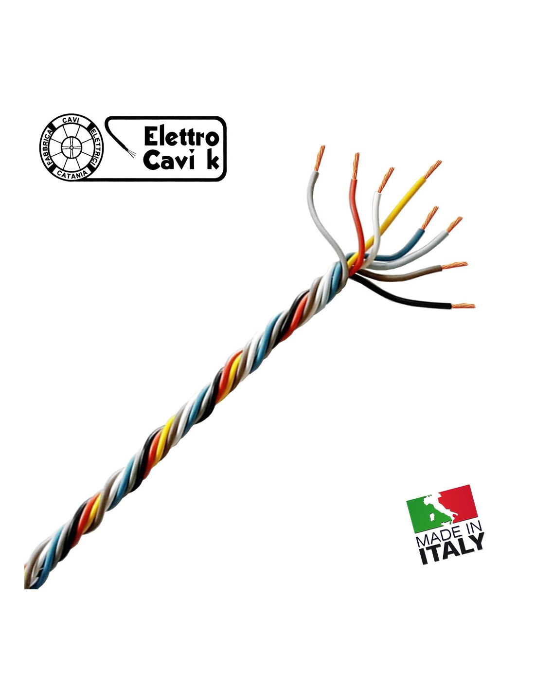 8 Conduttori da 0.50 mm² intrecciati di colore Grigio, Rosso, Giallo, Bianco, Blu, Nero, Azzurro, Marrone