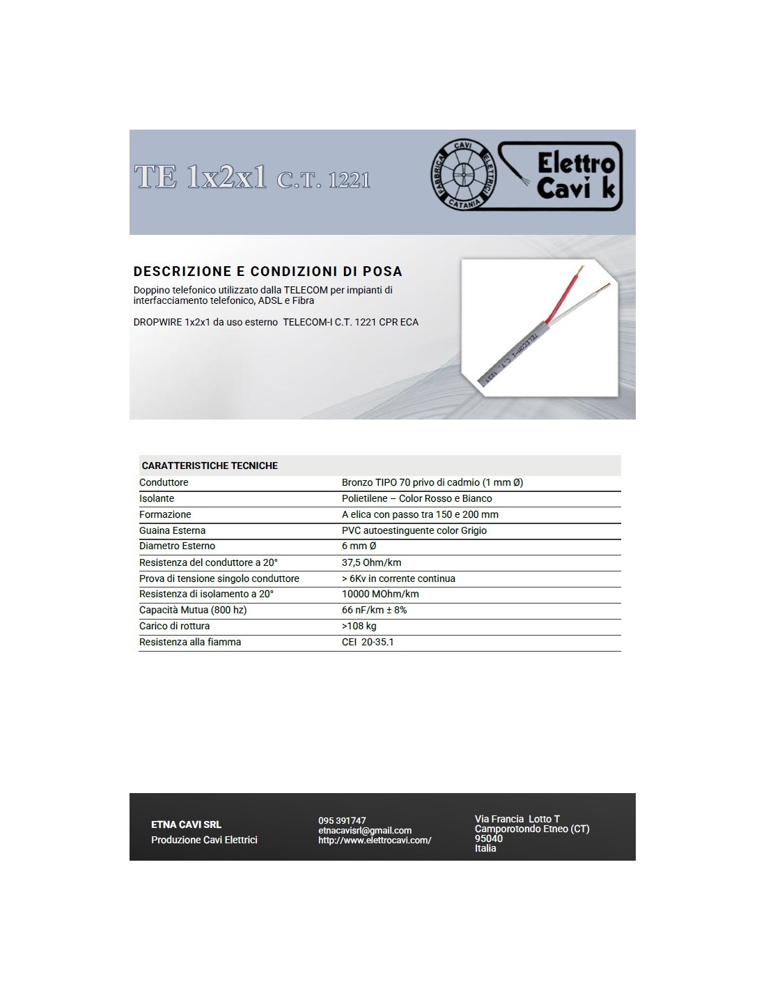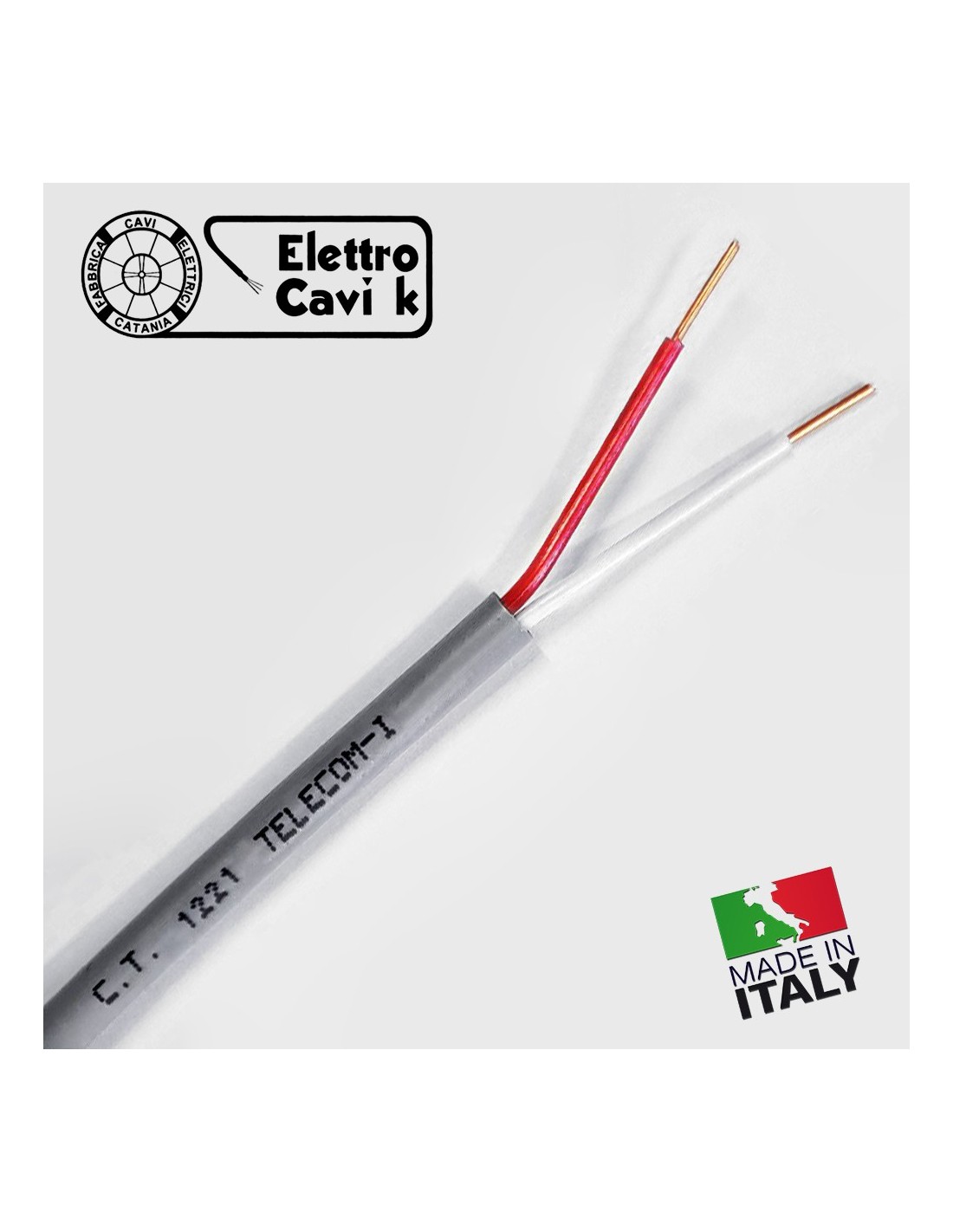 CAVO TELEFONICO DOPPINO TELECOM 1x2x1 mm DA ESTERNO RIGIDO DROPWIRE TELECOM-I 1221 C.T. ECA CPR 2 POLI ROSSO BIANCO MADE ITALY