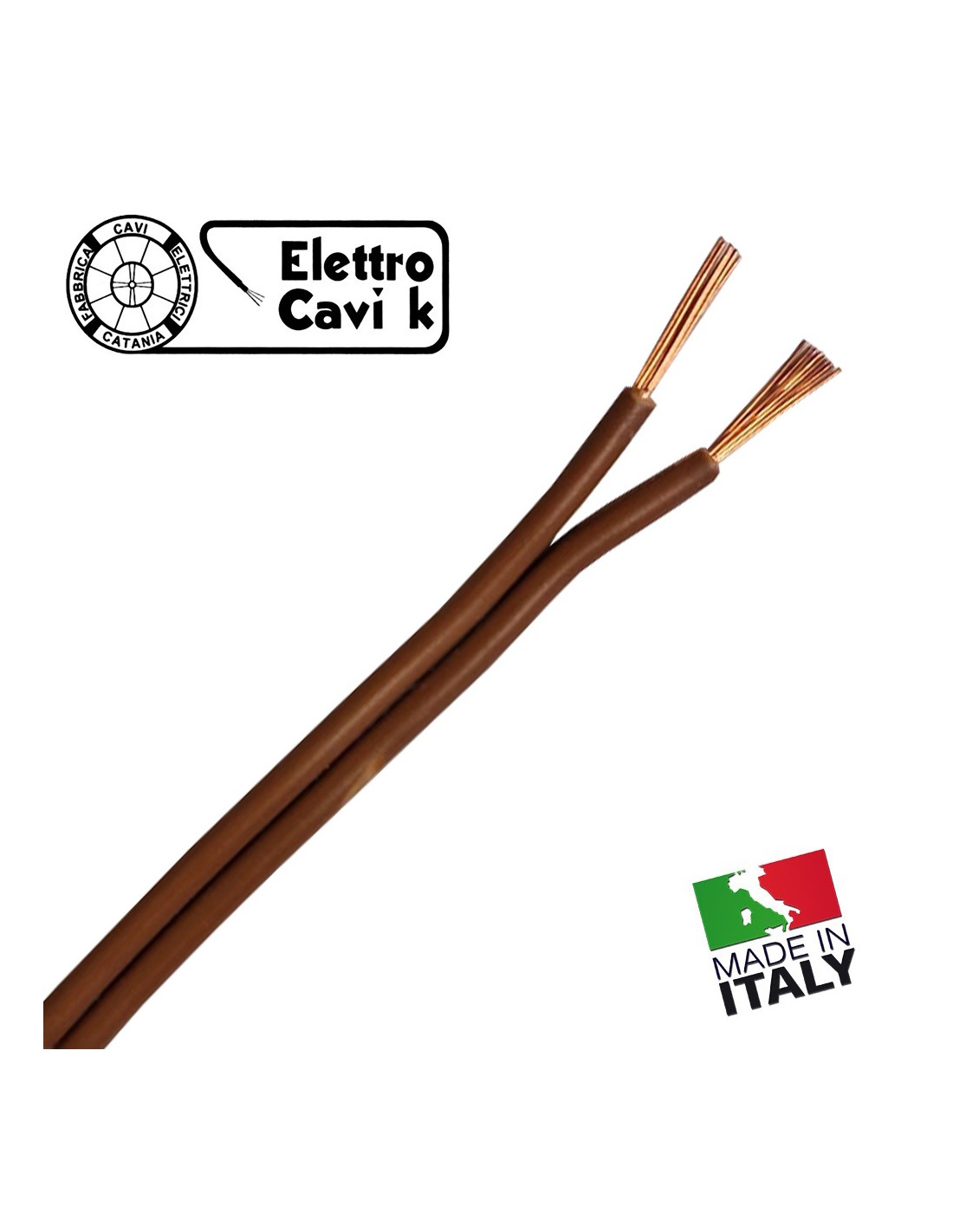 CAVO PIATTINA BIPOLARE COSTA STRETTA 2x0,50 mm² COLOR MARRONE LAMPADARI BAJOUR 2 POLI IN RAME MADE IN ITALY