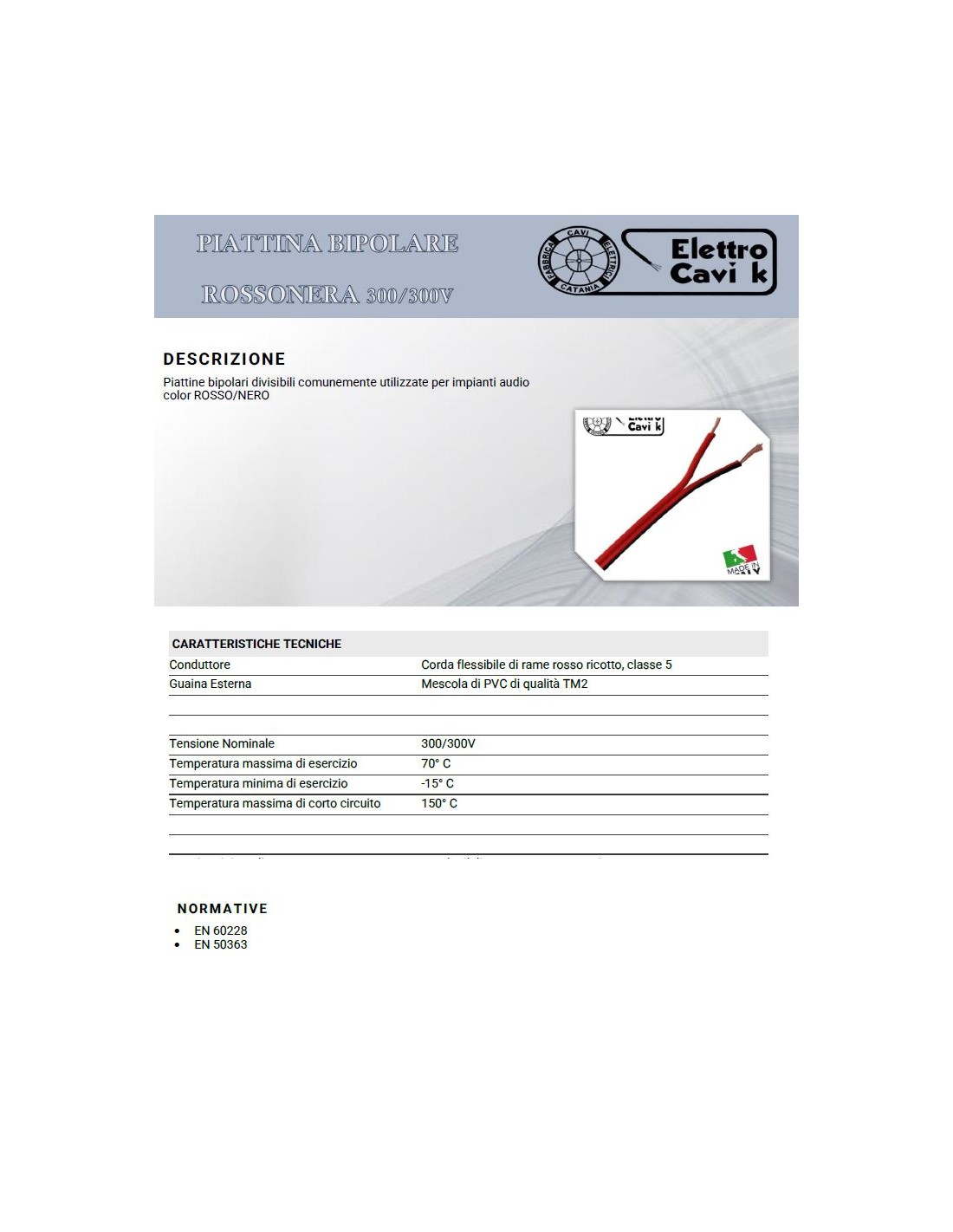 CAVO PIATTINA BIPOLARE ROSSONERA 2x2,5 mm² COLOR ROSSO NERO PER IMPIANTI AUDIO CASSE STEREO AUTO 2 POLI IN RAME MADE IN ITALY