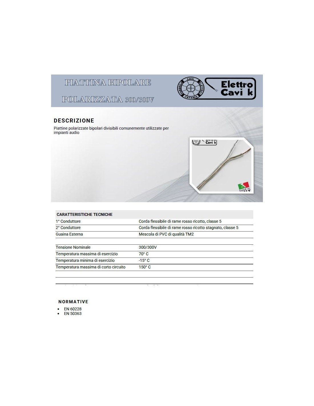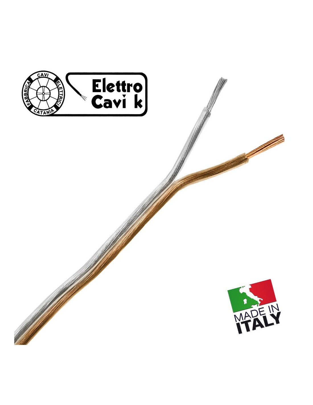 CAVO PIATTINA BIPOLARE POLARIZZATA 2x1,5 mm² TRASPARENTE PER IMPIANTI AUDIO CASSE STEREO AUTO 2 POLI IN RAME MADE IN ITALY