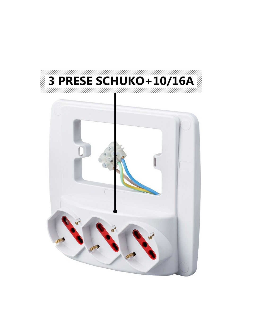 MULTIPRESA ELETTRICA DA PARETE 3 POSTI BIANCA 2P+T 220V SCHUKO 10/16A PROFESSIONALE MARCA ROSI EMILIA SMART MADE IN ITALY