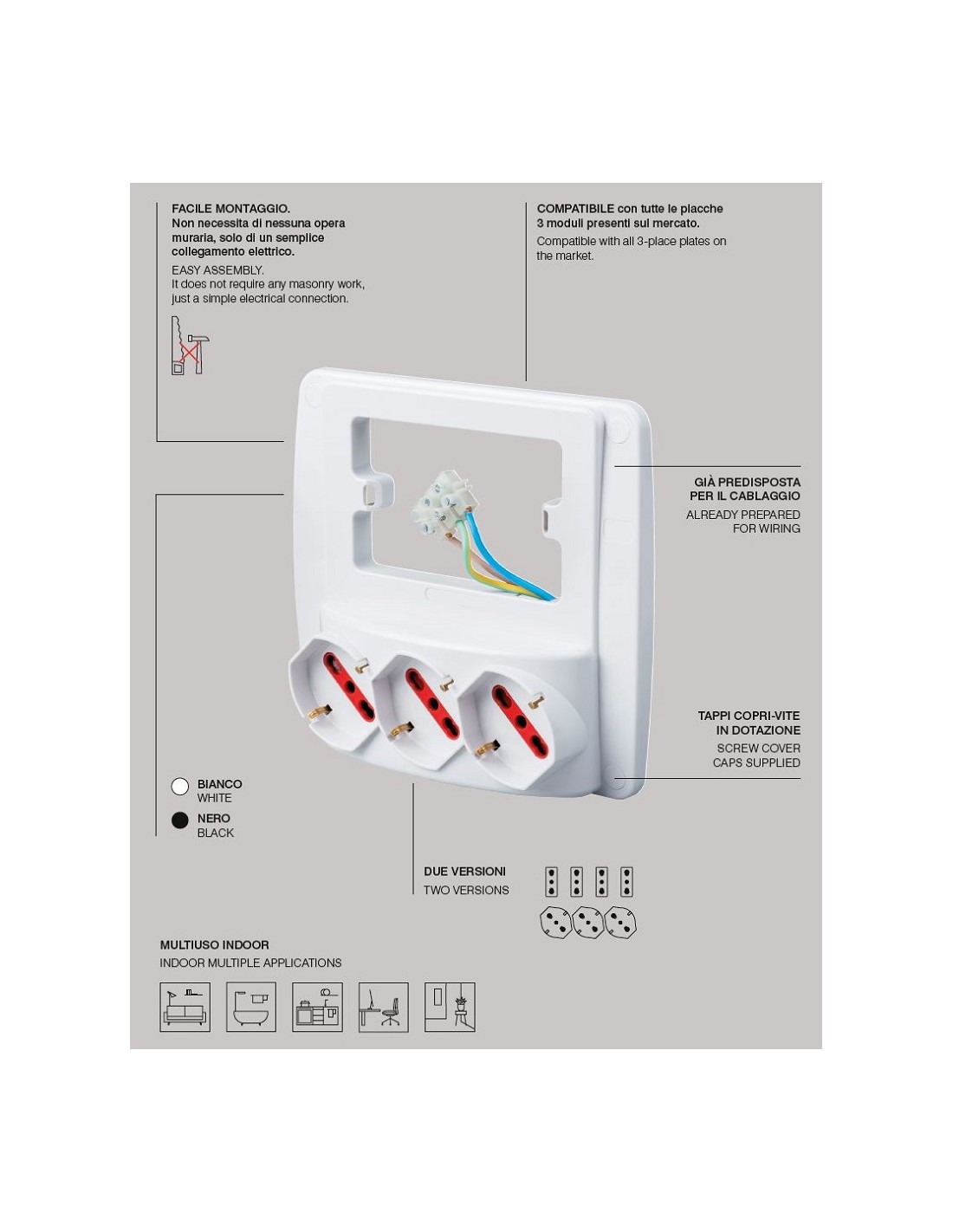 Minimo ingombro e massima praticità: moltiplica le prese elettriche dove più ti servono, con una multipresa sicura e dal montaggio rapido e intuitivo, senza necessità di opere murarie.