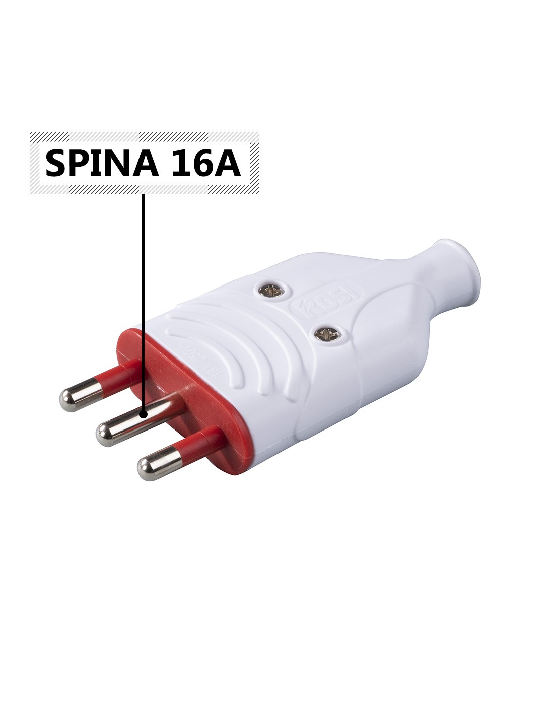SPINA ELETTRICA 16A ANTISCHIACCIAMENTO BIANCA 2P+T MONOFASE 220V GOMMA VOLANTE PROFESSIONALE MARCA ROSI ELA PLUG MADE IN ITALY