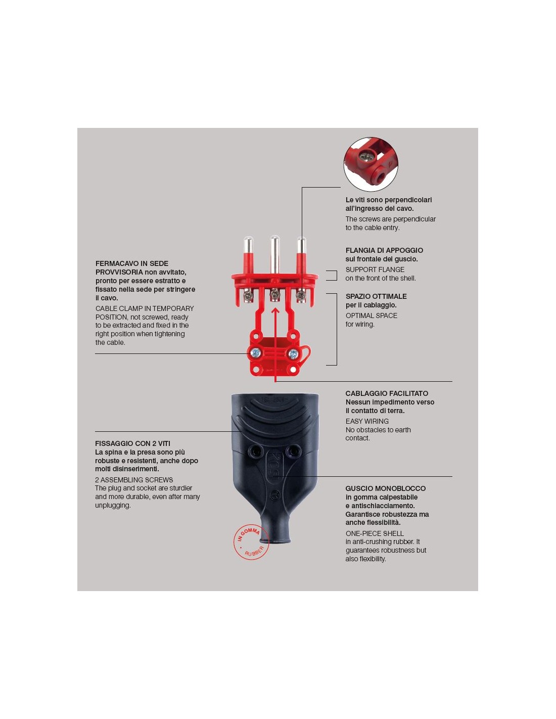 FISSAGGIO CON 2 VITI: La spina e la presa sono più robuste e resistenti, anche dopo molti disinserimenti.